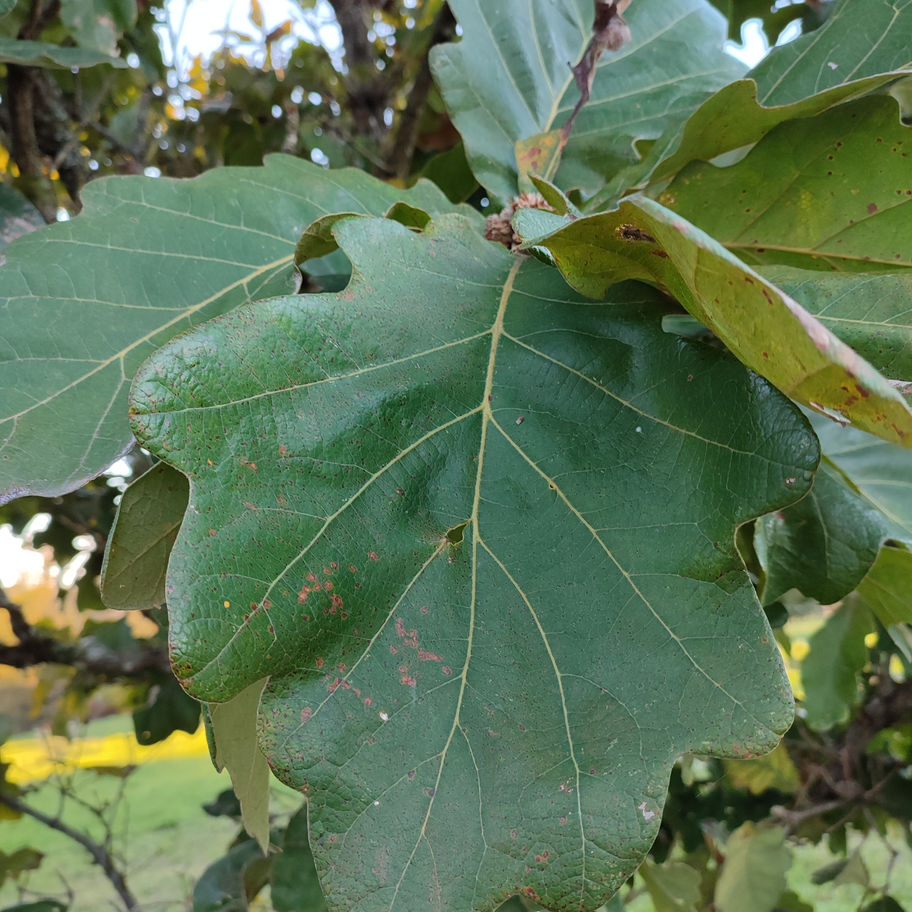 Arbre à feuillage caduc. Ses feuilles sont parmi les plus grandes du genre (avec Q. resinosa) pouvant mesurer plus de 40cm de long et 30cm de large, avec des lobes rarement profondément creusés. Elles sont assez coriaces, vertes, devenant jaunes en automne. Il aime les sols frais, drainé. Ne supporte pas le calcaire, et peu craindre la sècheresse. (20m) (sous-genre Quercus - section Quercus) Les glands sont comestibles. Utilisé traditionnellement en Corée et au Japon. Voir article Les Chênes à glands doux, des fruitiers d'avenir ? paru dans Hommes & Plantes n°126 (septembre 2023).